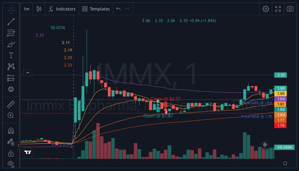 | 12/14/2022 | B | IMMX | 30 | $1.87 | 08:22:41 | $0.99 |