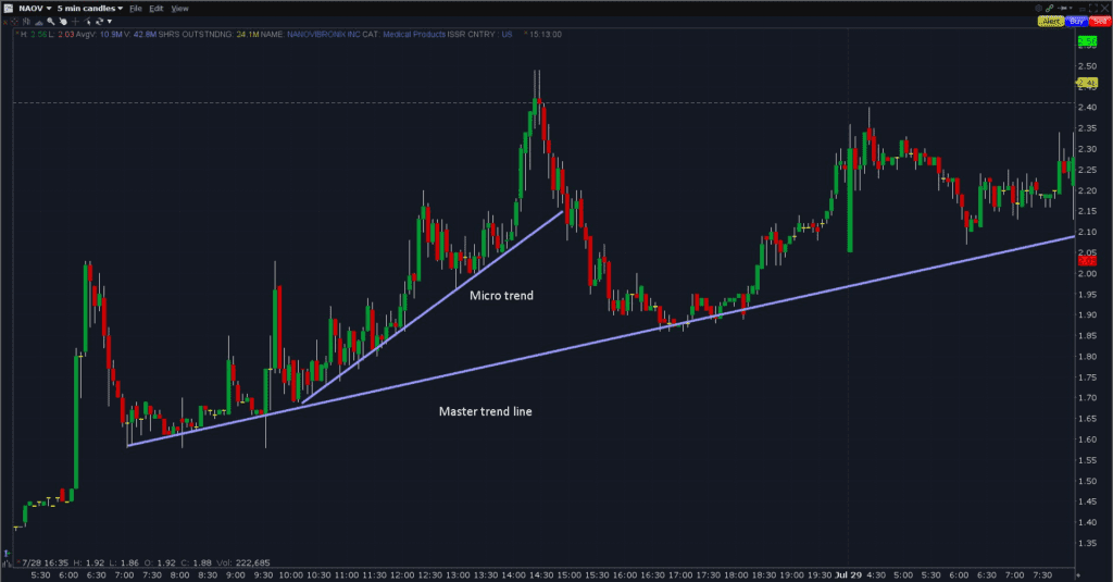 1. Master trend lines and micro Enter on confirmation of the master trendline holding with a stop-loss a few cents below the prior wick lows to ensure you don’t get wicked out. You can also build smaller micro-trends inside and use those with similar risk/reward. $XBIO $NAOV
