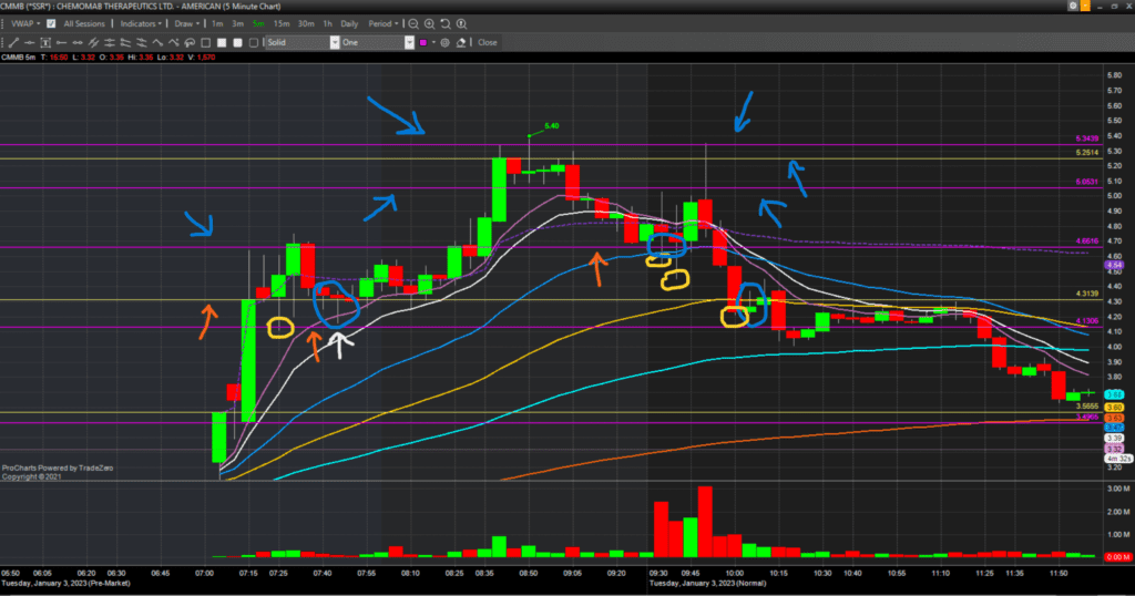 - The chart demonstrates support by respecting one or a few of the following: the larger timeframe trend line, 8/12/26/50/89/200 EMA, daily and intraday support/resistance levels, levels based on long 5min candles